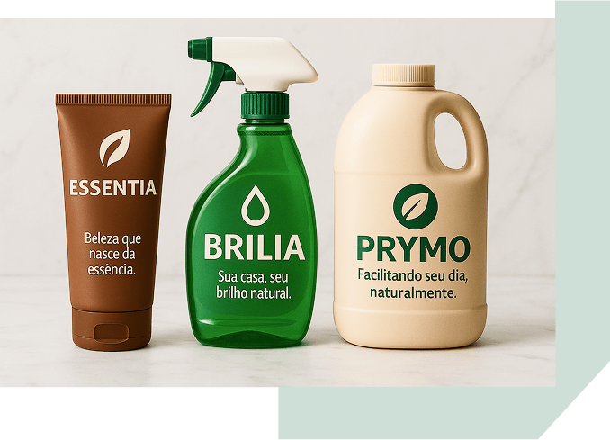 Frascos e embalagens de cosméticos, produtos de limpeza e utilidades.